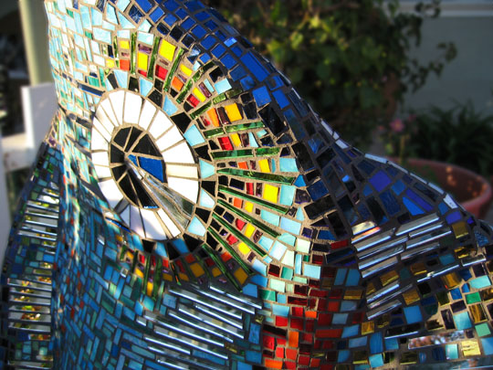 The underside of his tail is a swirling freeform mosaic style.